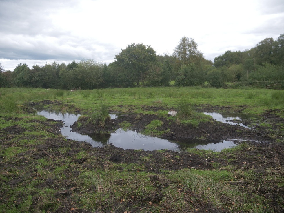 '' Exciting progress is underway on CELT’s wetland restoration project, part of our Biodiversity Action Plan Implementation funded by the Community Foundation Ireland and Burrenbeo Trust. Just a week after the new ponds were dug, they are already filling with water, bringing life back to the landscape. The former drainage ditch has been returned to a more natural, meandering form, with peat dams creating varied water levels and pools.